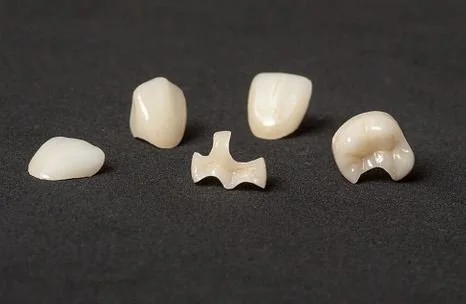 Crowns cover or "cap" a tooth to restore the normal function and appearance of the tooth. Crowns may be made as all metal, porcelain fused to metal, or all-ceramic (porcelain). Crowns are indicated for teeth with very large fillings, teeth that have had a root canal, fractured teeth, worn teeth due to grinding, and misshapen and/or discolored teeth.